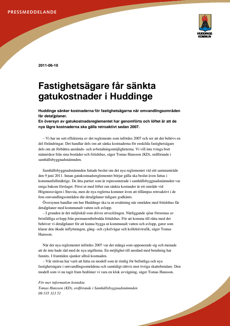 Fastighetsägare får sänkta gatukostnader i Huddinge