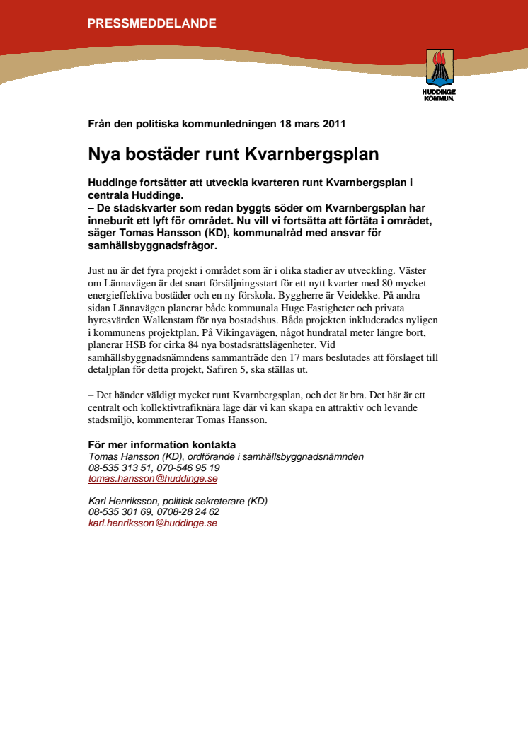 ¬ De stadskvarter som redan byggts söder om Kvarnbergsplan har inneburit ett lyft för området. Nu vill vi fortsätta att förtäta i området, säger Tomas Hansson (KD), kommunalråd med ansvar för samhällsbyggnadsfrågor.